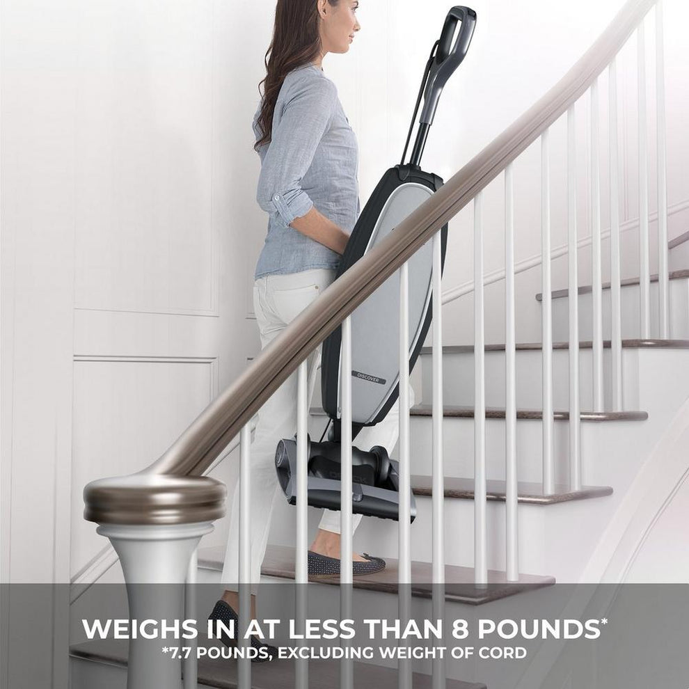 Weighing less than 8 lbs the Oreck Discover is one of the lightest, full-powered, swivel-steering upright vacuum cleaners in America