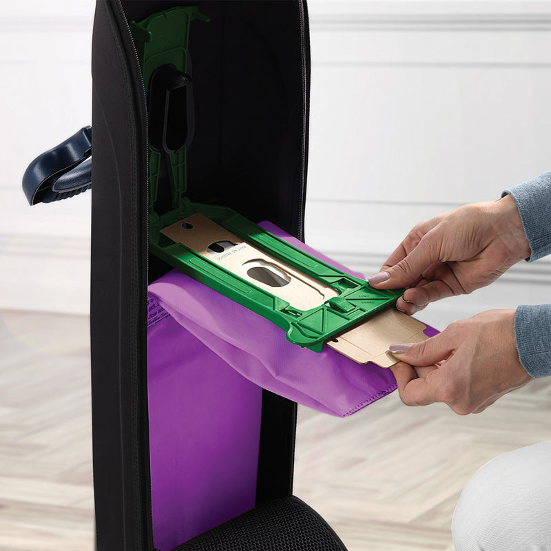 - SaniSeal® System automatically locks in allergen matter, dirt & debris upon disposal, significantly reducing the \"dust puff\" created by other vacuums.